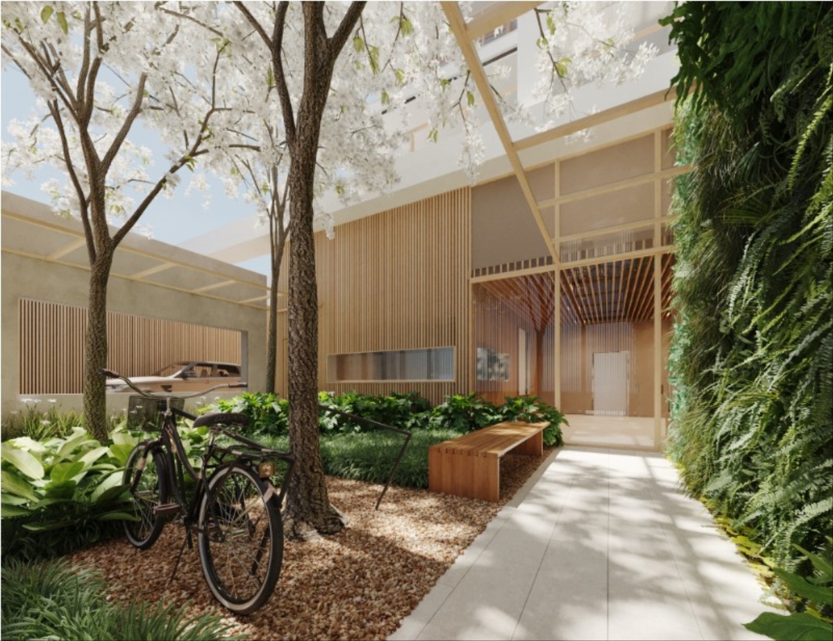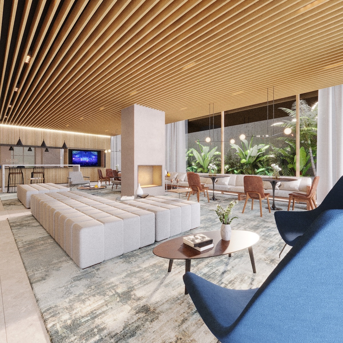 Áreas comuns Lobby de Entrada, Salão de Festa/Gourmet com lareira, Churrasqueira e Jardim Integrado, Academia By Life Fitness, Piscina com raia de 25 metros, Solarium, Área de descanso, Hidromassagem, Sala de massagem, Sauna seca, Brinquedoteca com fraldário, Delivery Space e Bicicletário.