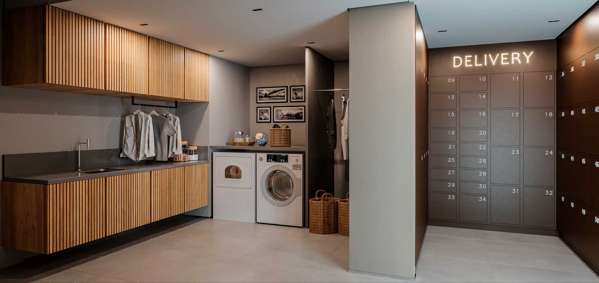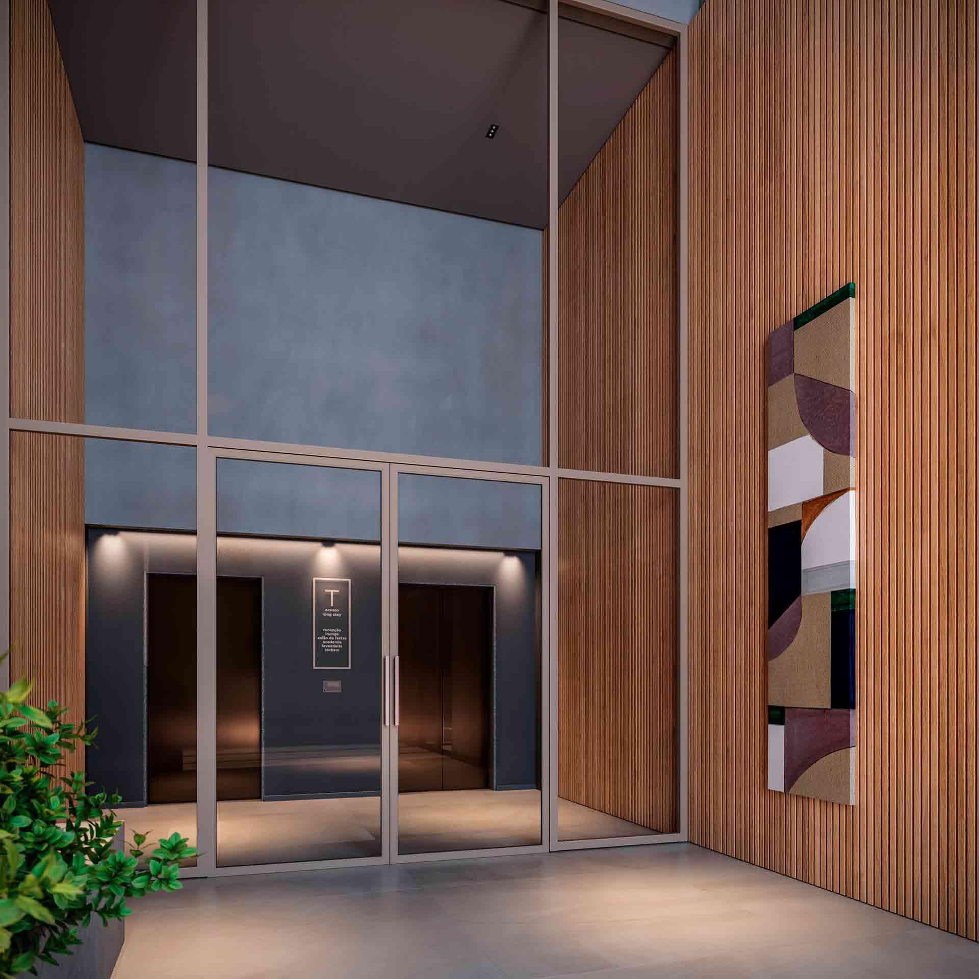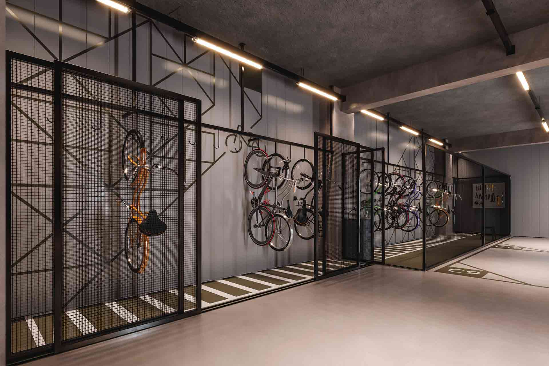 Térreo/subsolo Recepção, Lobby dos elevadores, Central lounge, Salão de festas gourmet com jardim integrado, Academia, Lavanderia, Área de delivery com lockers, Elevador exclusivo para entregas nos andares (seu pedido na porta de casa/ home delivery) e bicicletários.
