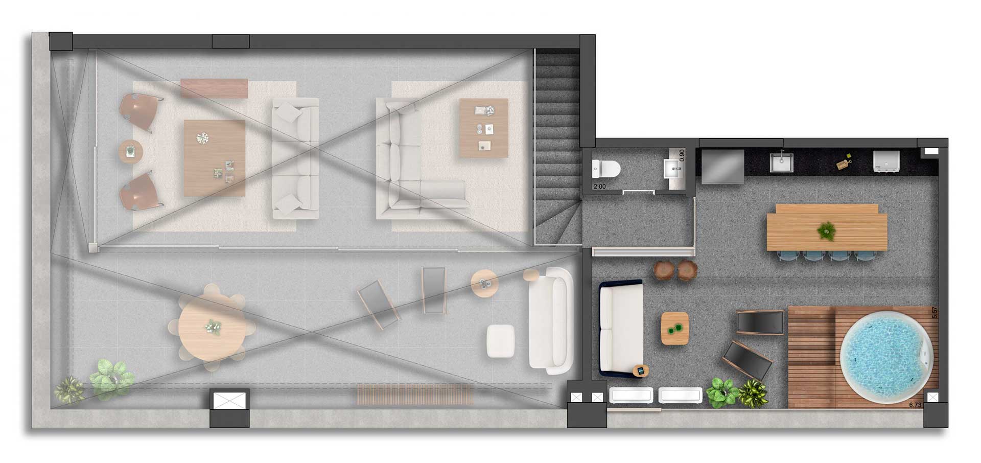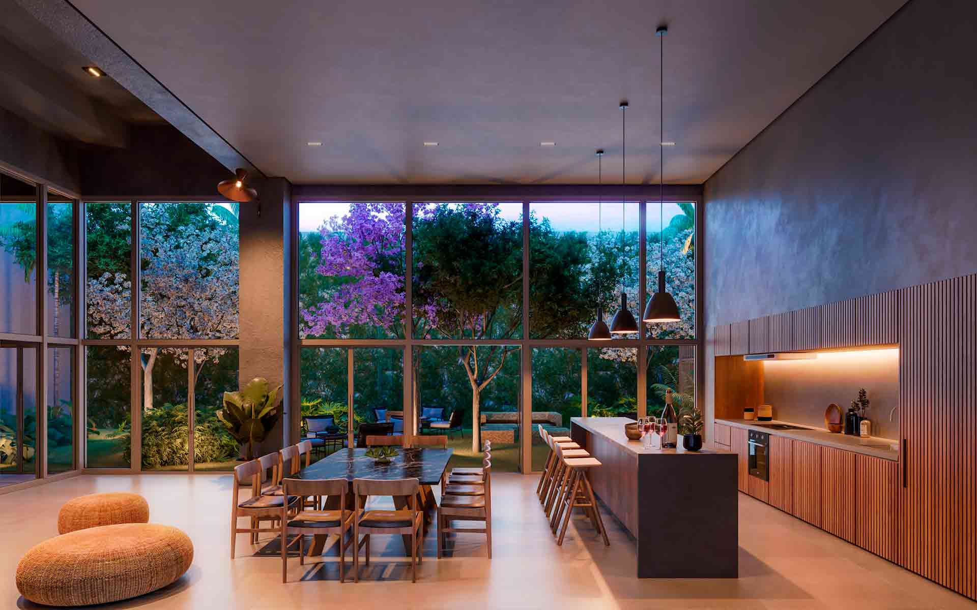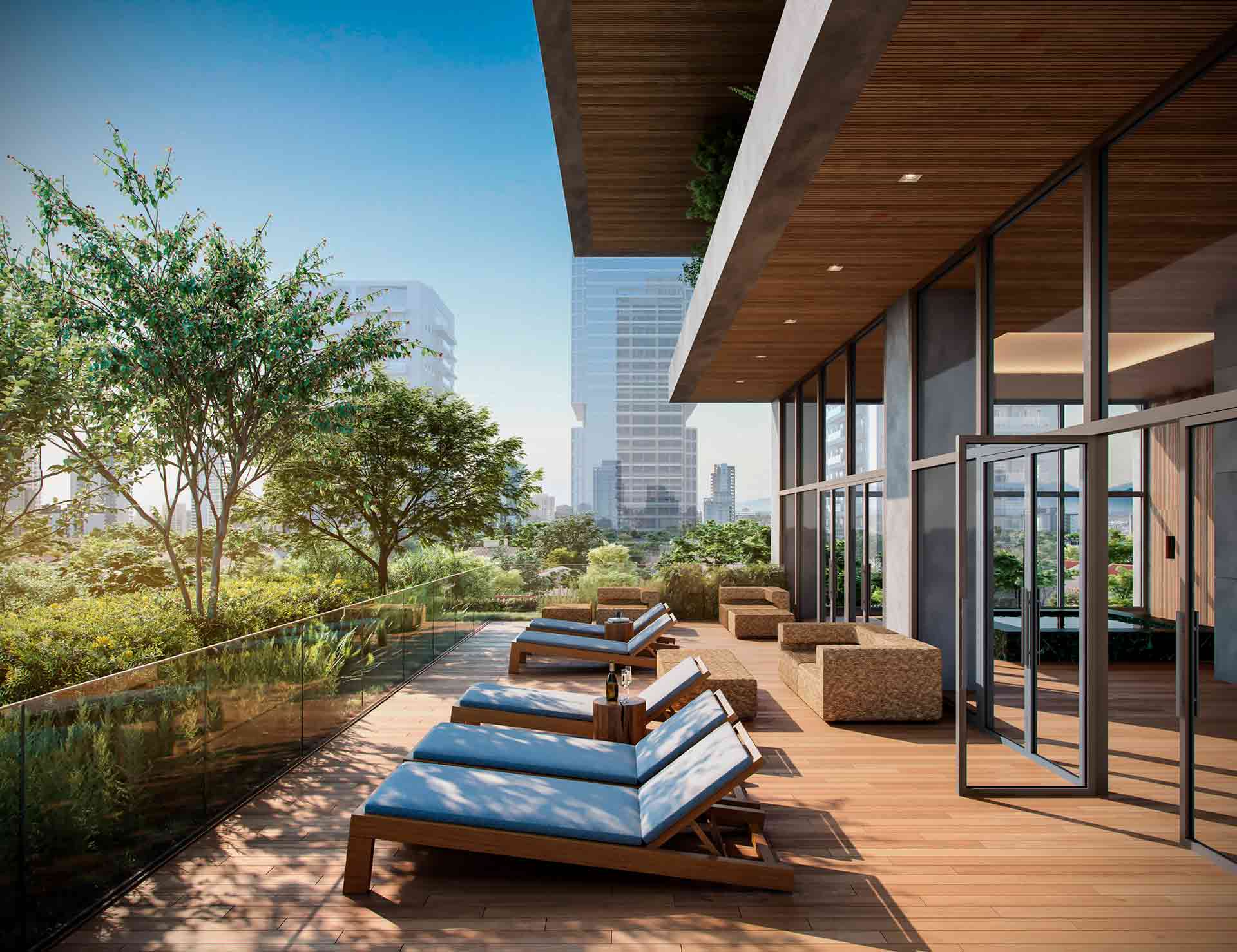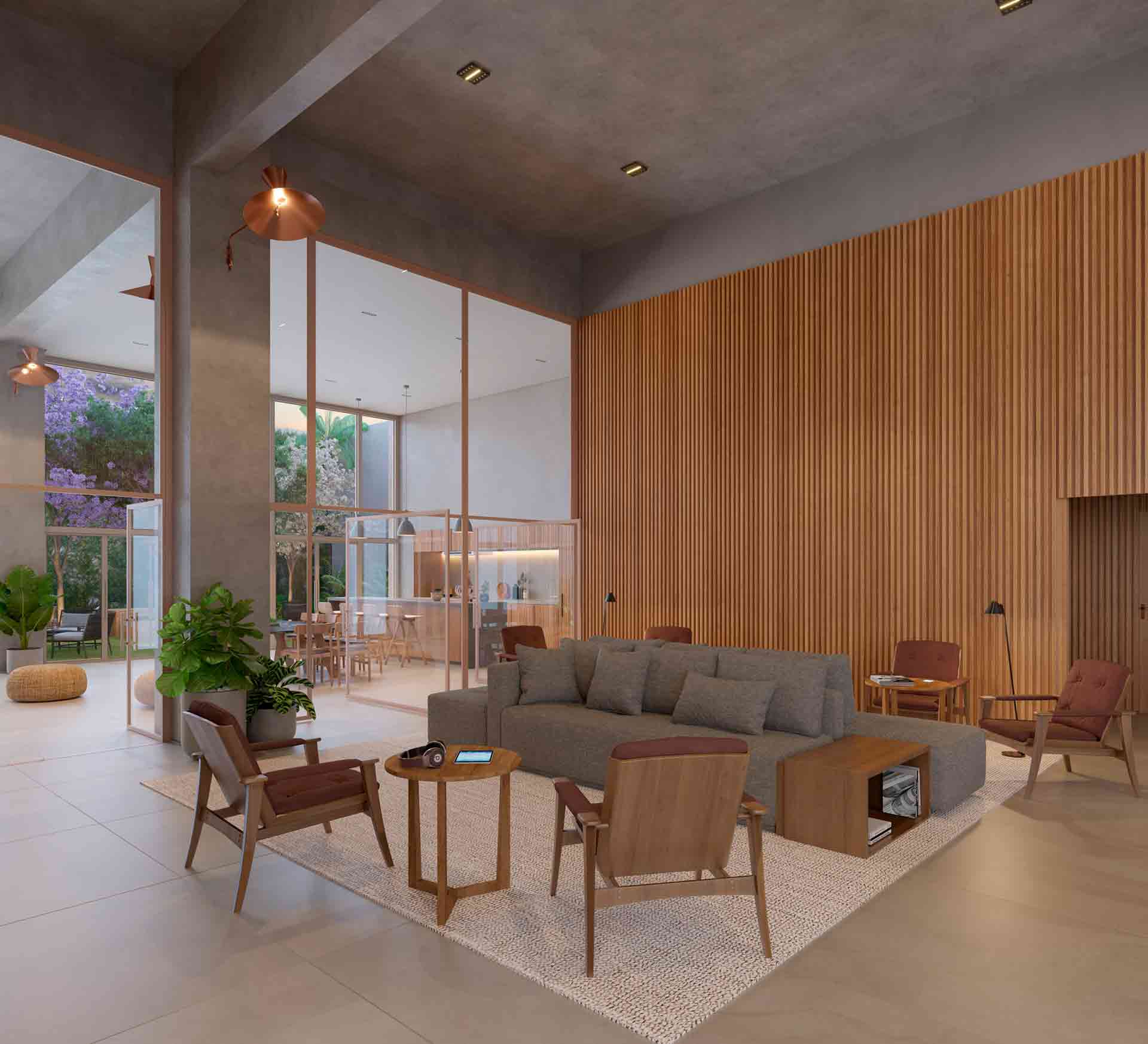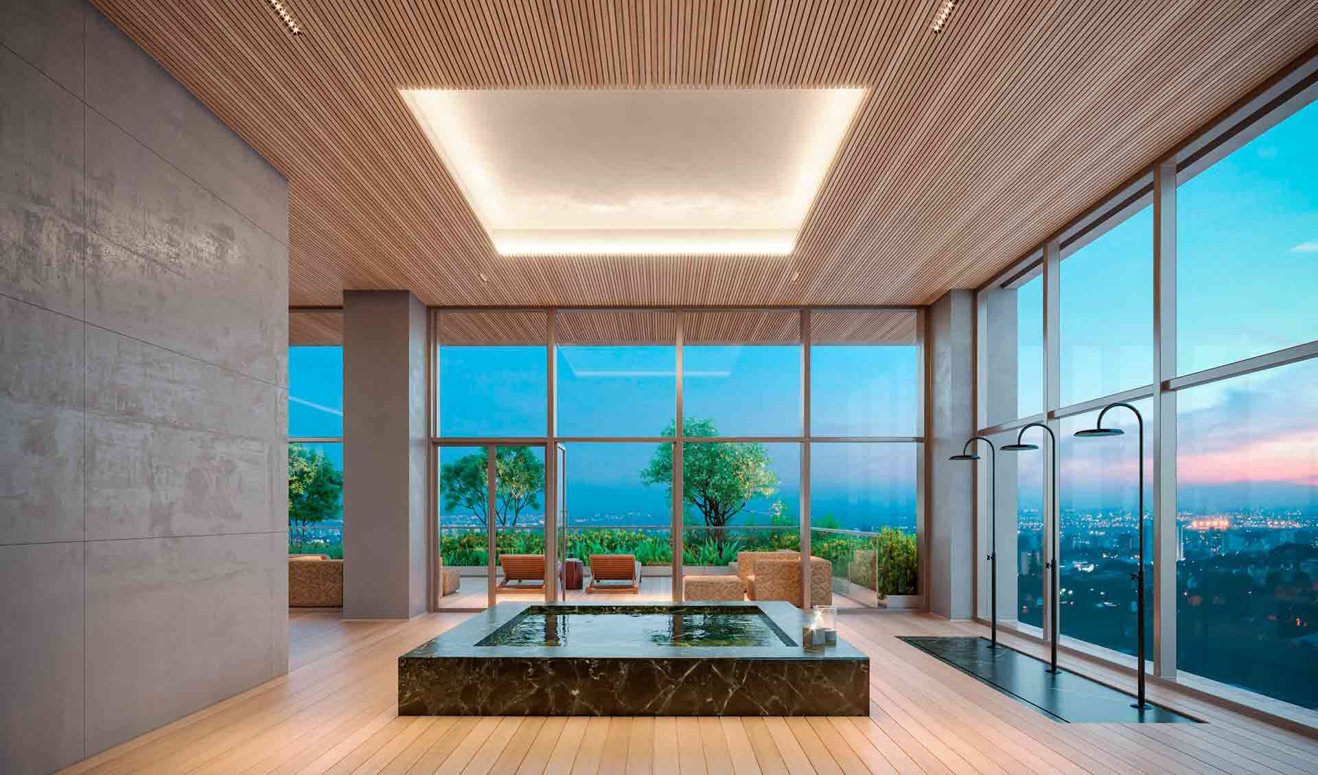 Sua execução será composta de concreto e a madeira traz uma composição atemporal e imponente.