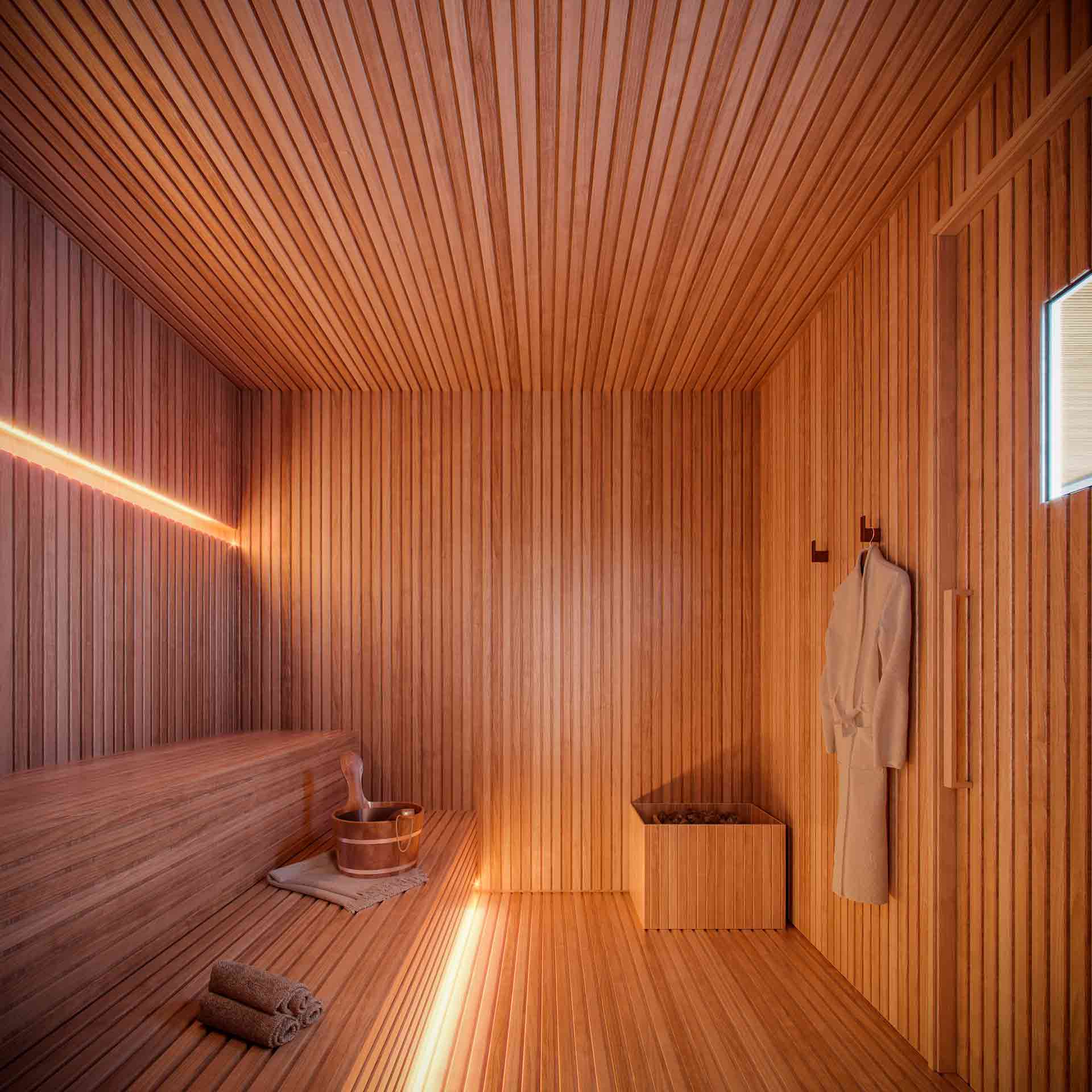 2º pavimento Hidromassagem, Duchas, Sauna seca, Piscina aquecida com raia de 25 m, Sala de massagem, Solarium e Terraço.