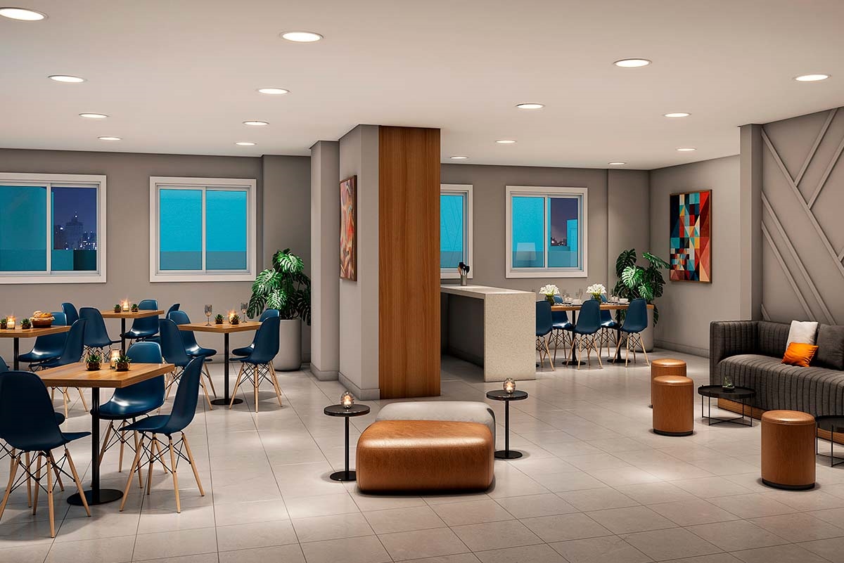 UNIDADES RESIDENCIAIS 386 sendo: 230 unidades - 29 m² - 1 dorm. com terraço l 156 unidades - 35 m² - 2 dorms. com terraço.