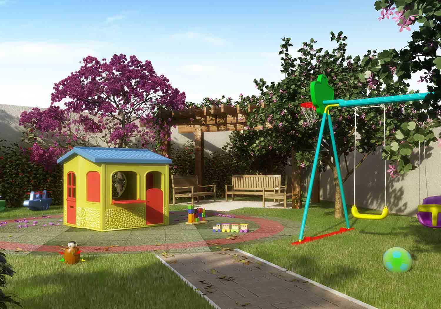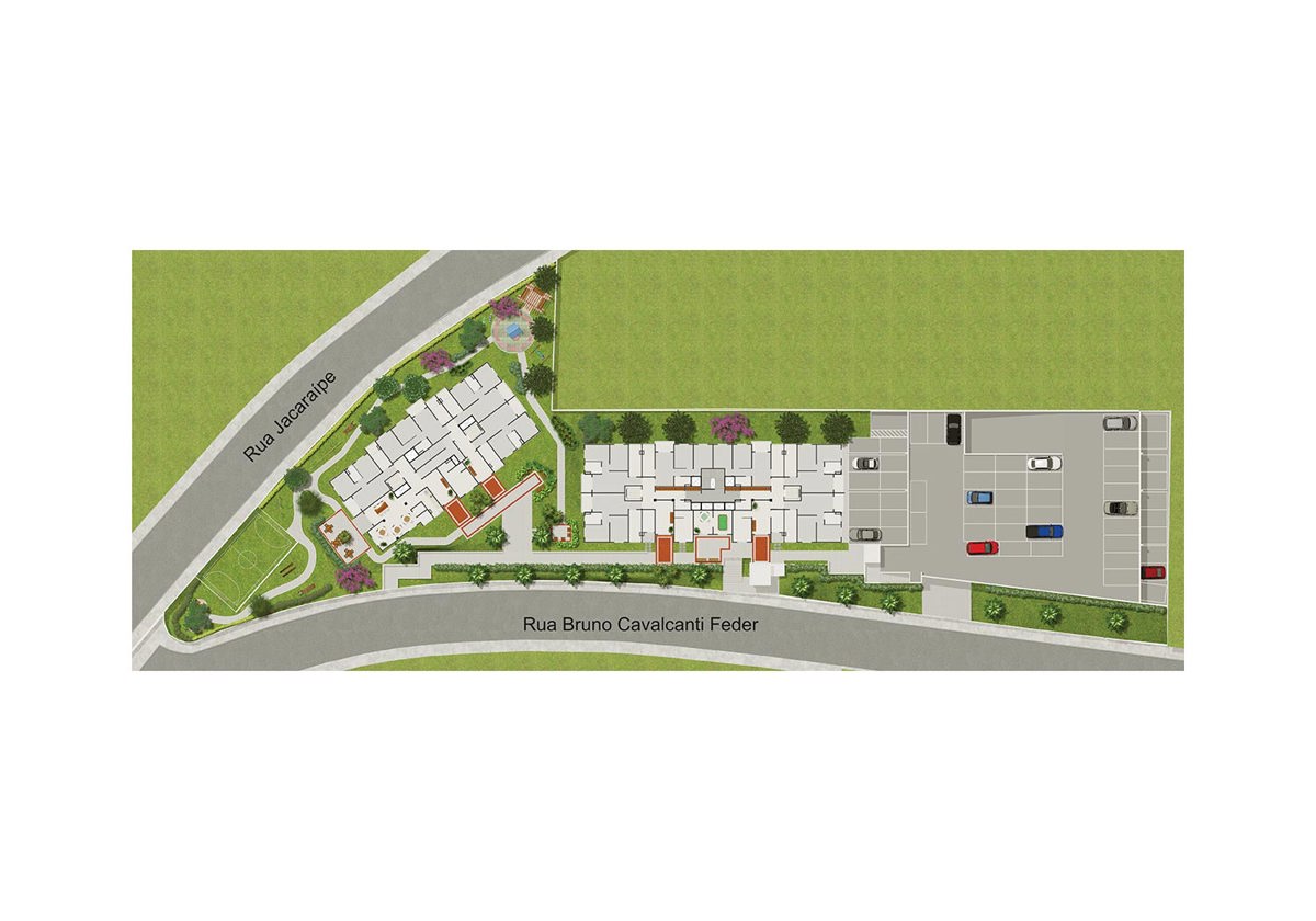 Lazer: Salão de Festas / Salão de Jogos / Praça de Leitura / Praças das Mamães / BabyPlay / Redário / Bosque / Praça dos Amigos / Play Aventura / Quadra Gramada / Fitness Externo.