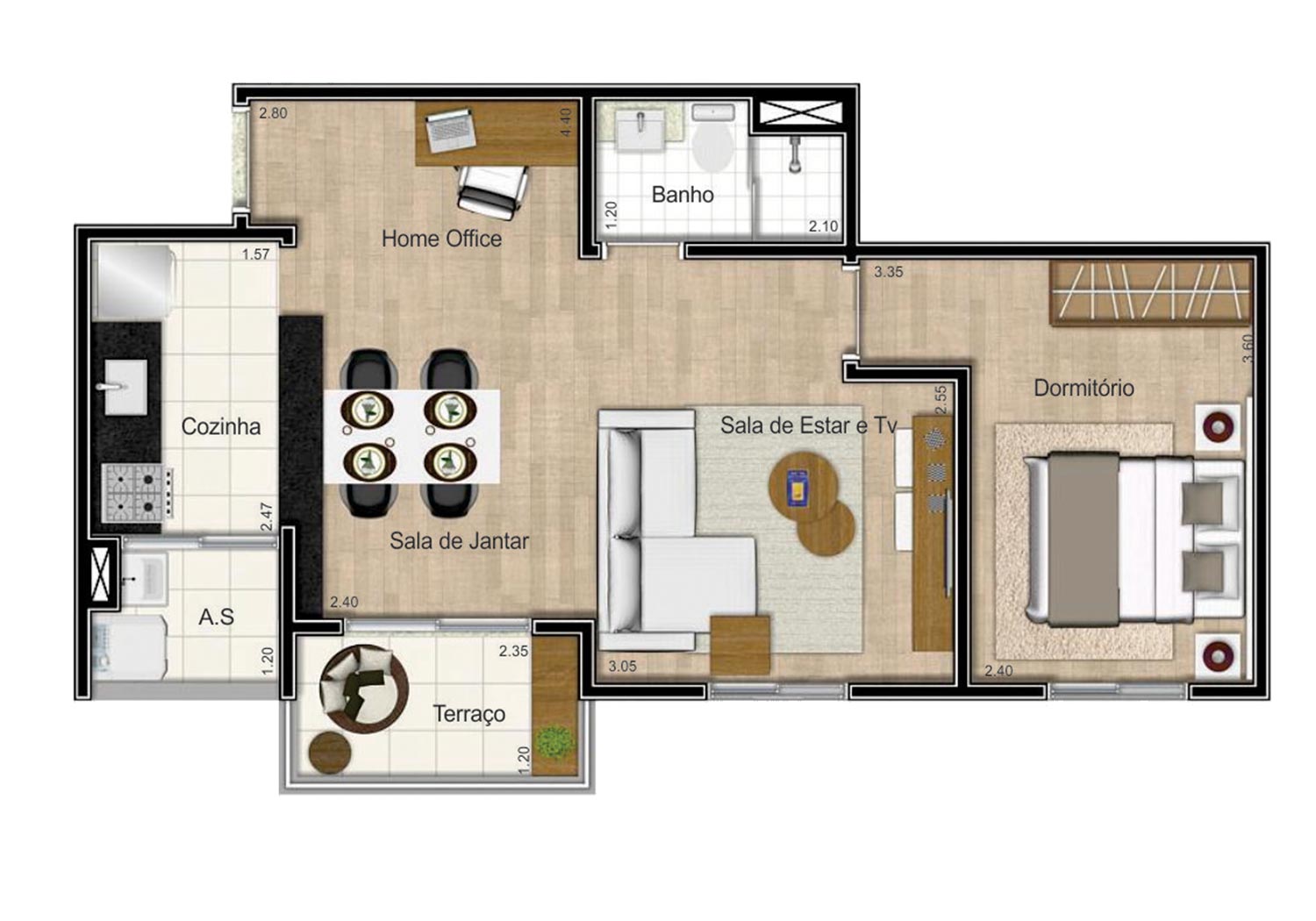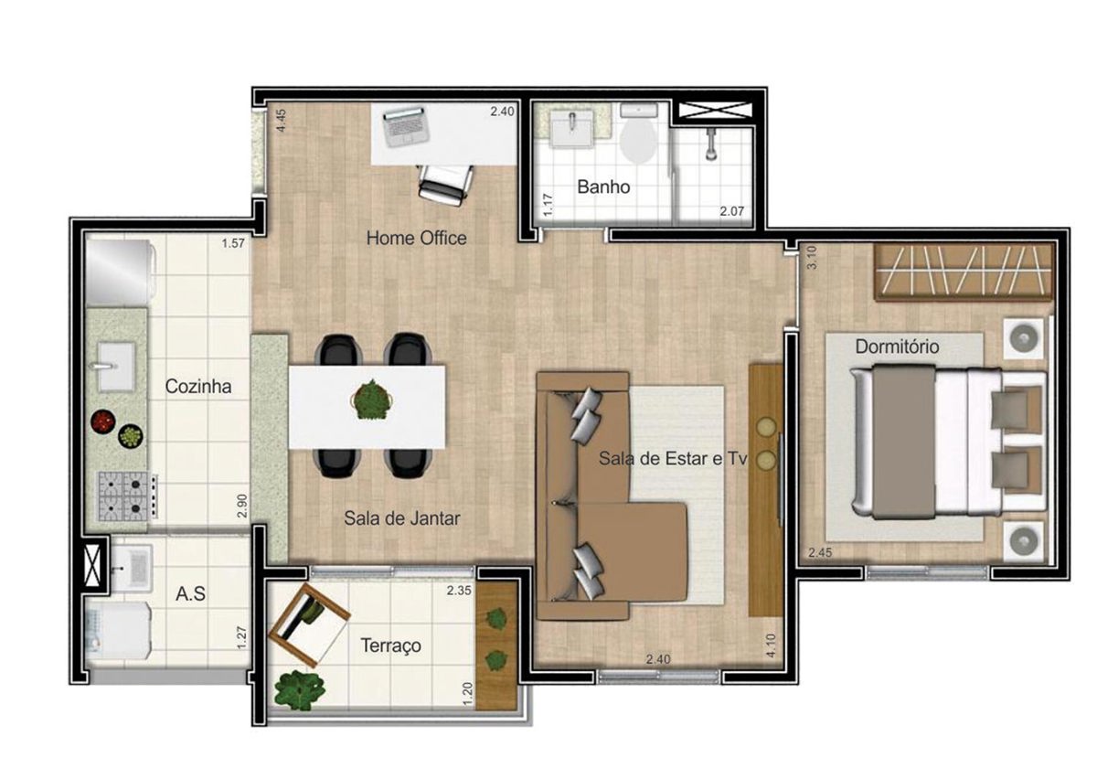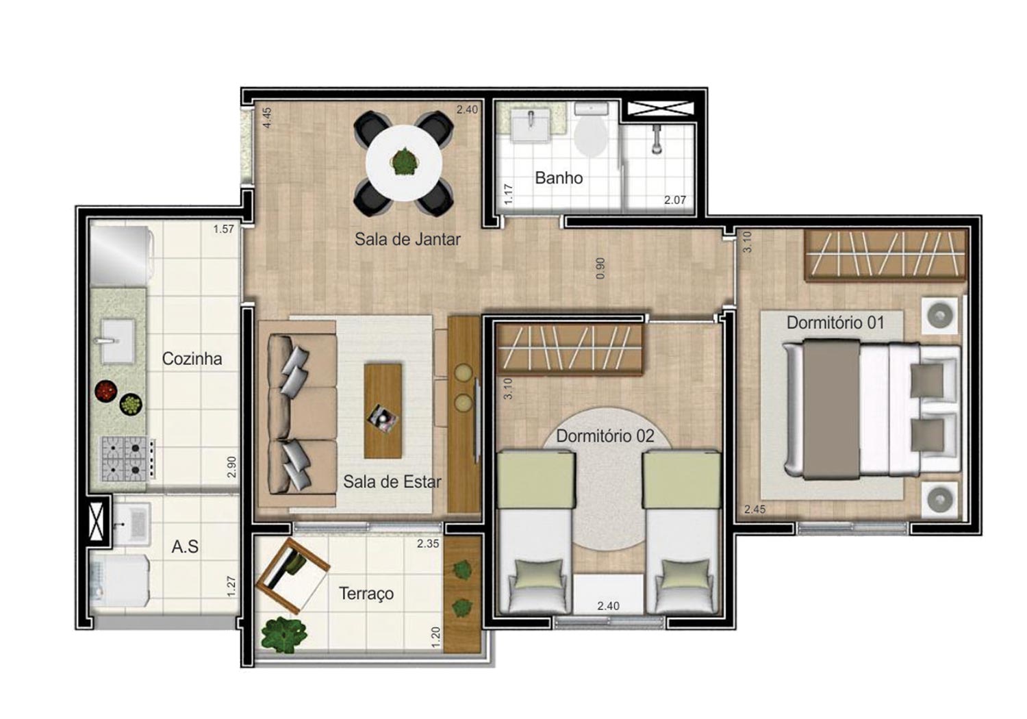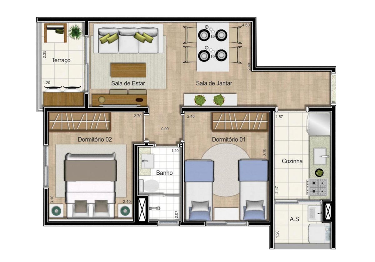 Tipologia: 2 dorms. (46 m² e 49 m²)