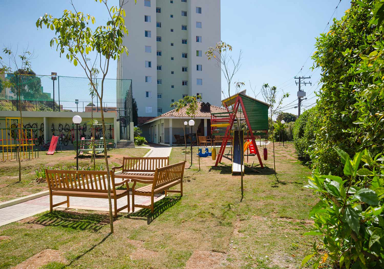 Lazer: Salão de Festas / Bicicletário / Praça Central / Lounge dos Amigos / Mini Quadra / Quadra Poliesportiva / Churrasqueira / Play Aventura / Praça do Fitness / Praça da Leitura