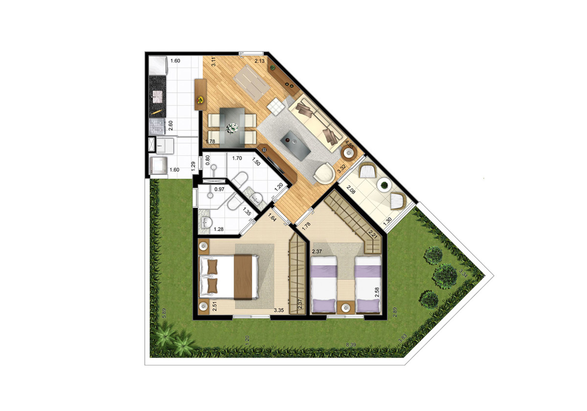 Tipologia: 3 dorms. com suíte (68 m²), 2 dorms. com suíte (57 m²), 2 dorms. (51 m²)