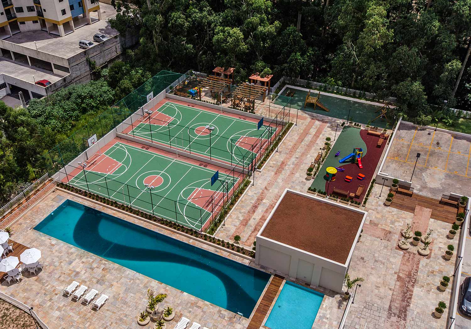 Lazer: Piscina com Raia de 25m / Piscina Infantil / 2 Churrasqueiras / 2 Quadras Poliesportiva / Play Aventura / Play Infantil / Salões de Festas / Espaço Gourmet / Salão de Jogos / Fitness / Brinquedoteca