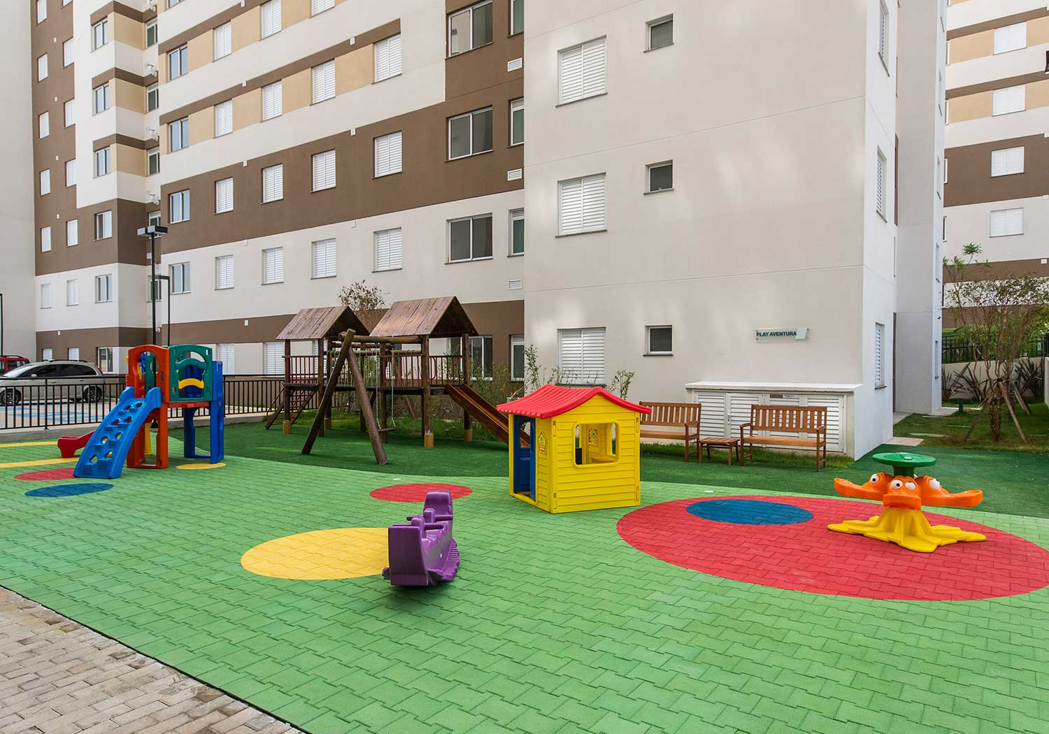 Lazer: Praça do Tabuleiro / Sala de Jogos Eletrônicos / Salão de Festas / Salão de Jogos / Fitness / Piscina Adulto / Piscina Infantil / Play Aventura / Churrasqueira com forno para pizza / Brinquedoteca / Espaço Gourmet
