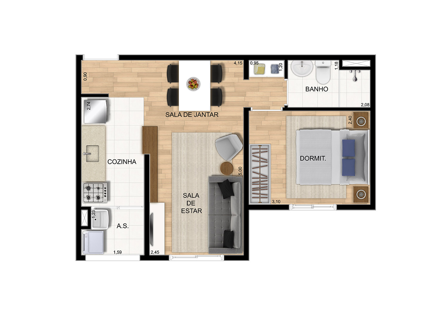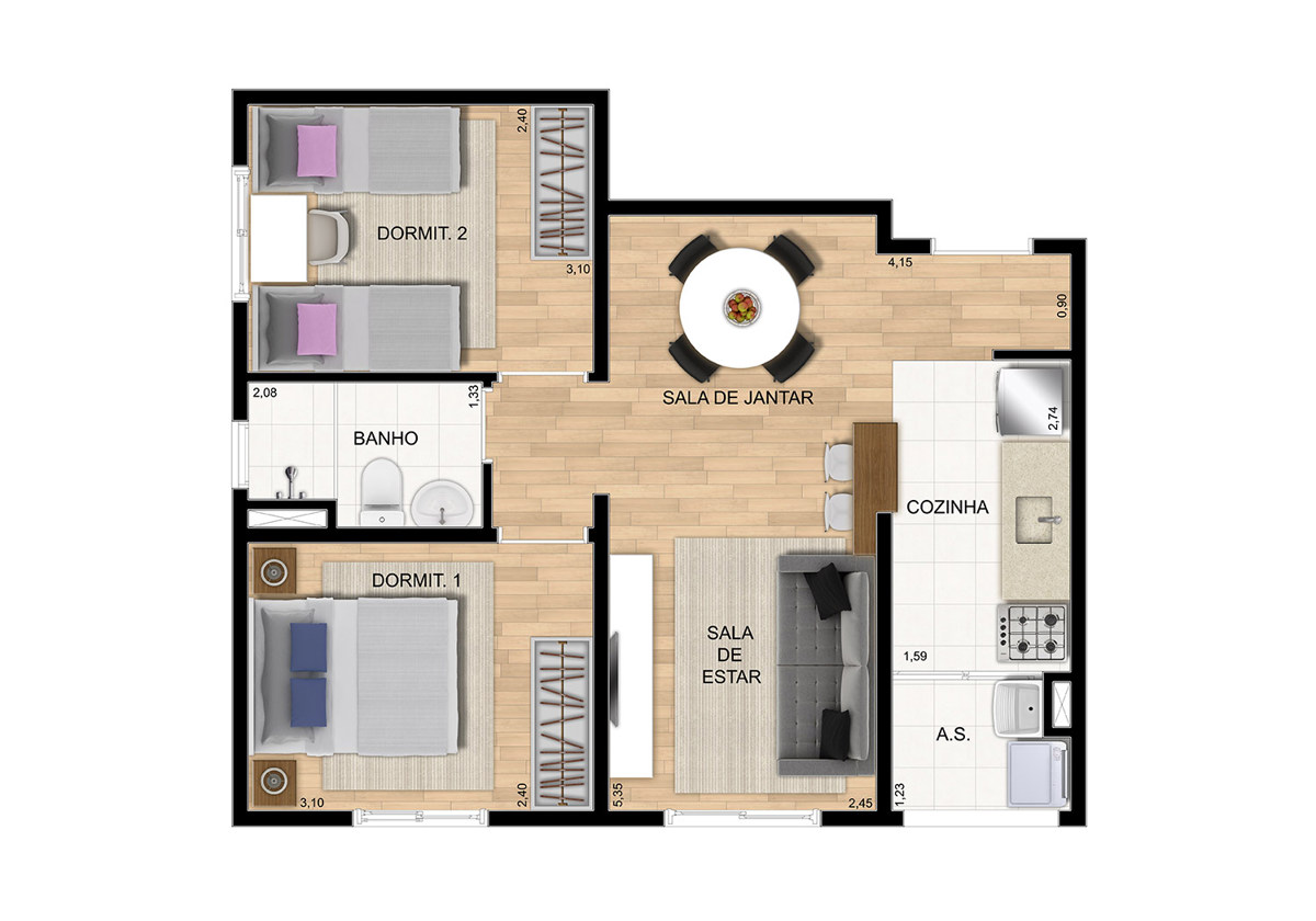 Tipologia: 2 dorms. (45 m²) 1 dorm. (35 m²)
