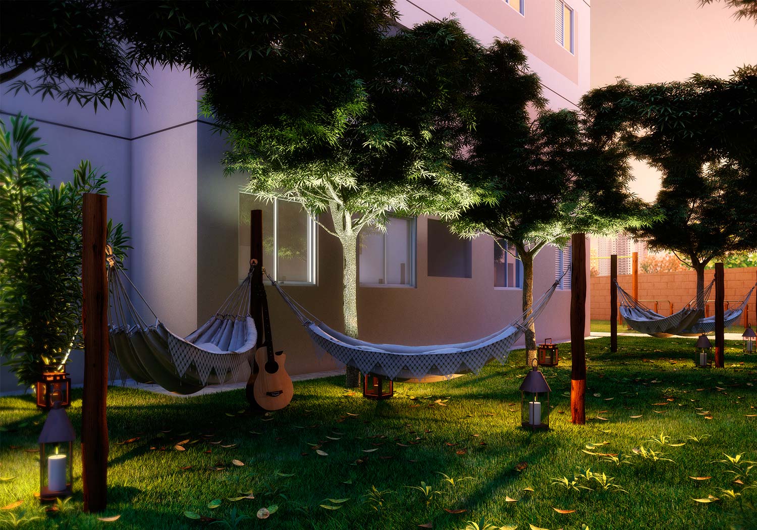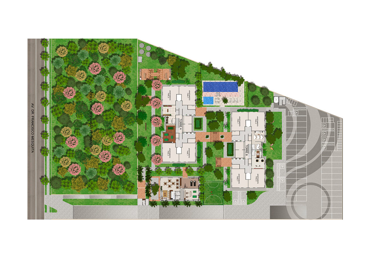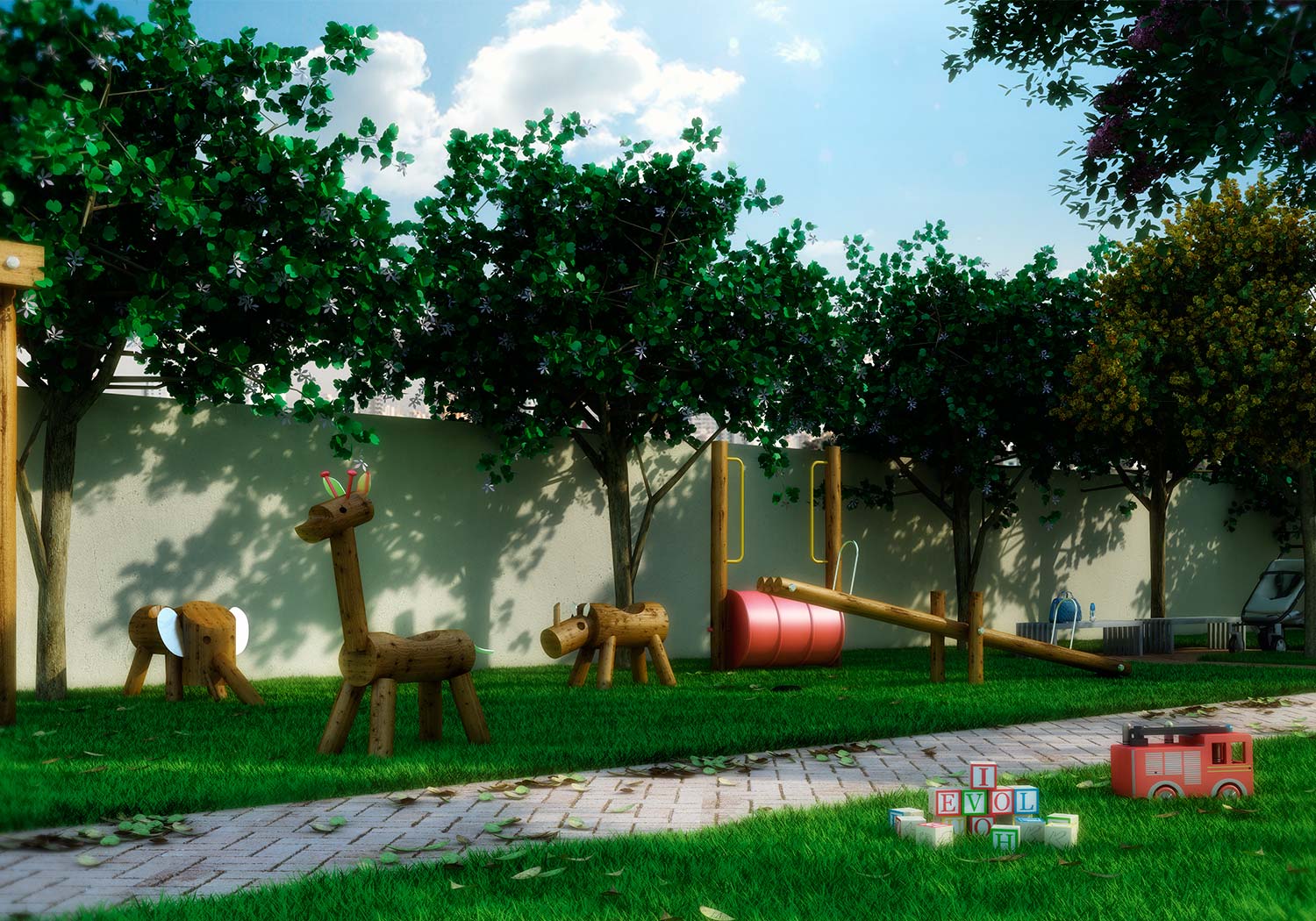 Lazer: Salão de Festas/ Sala de Ginástica/ Salão de Jogos/ Lavanderia/ Brinquedoteca/ Playground/ Praça das Mamães/ Espaço Gourmet/ Mini Bosque/ Piscina Adulto/ Piscina Infantil/ Redário/ Fitness Externo