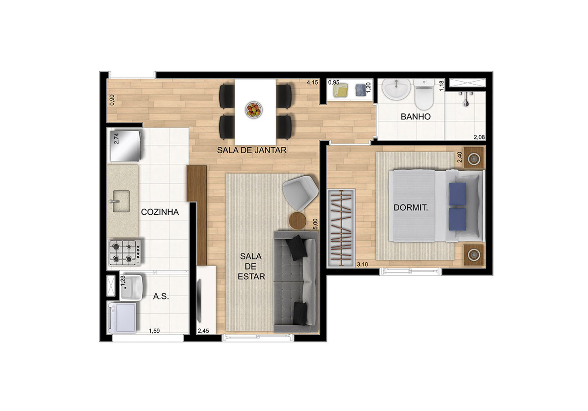 Tipologia: 2 dorms. (45 m²) 1 dorm. (35 m²)