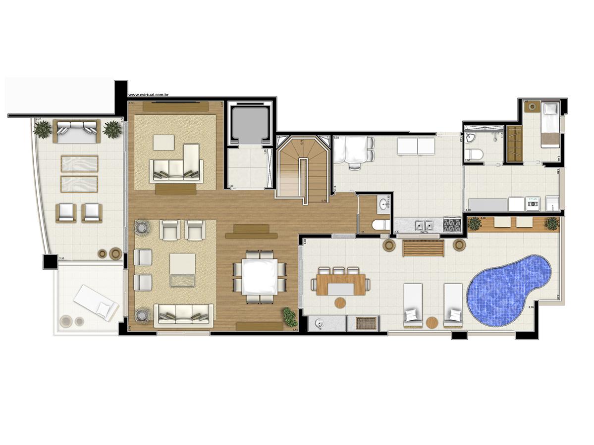 Lazer: Piscina coberta e climatizada c/ raia de 25m, Fitness, Quadra poliesportiva, Spa, Sala de massagem, Sauna seca, Espaço zen, Espaço gourmet, Playground, Piscina infantil