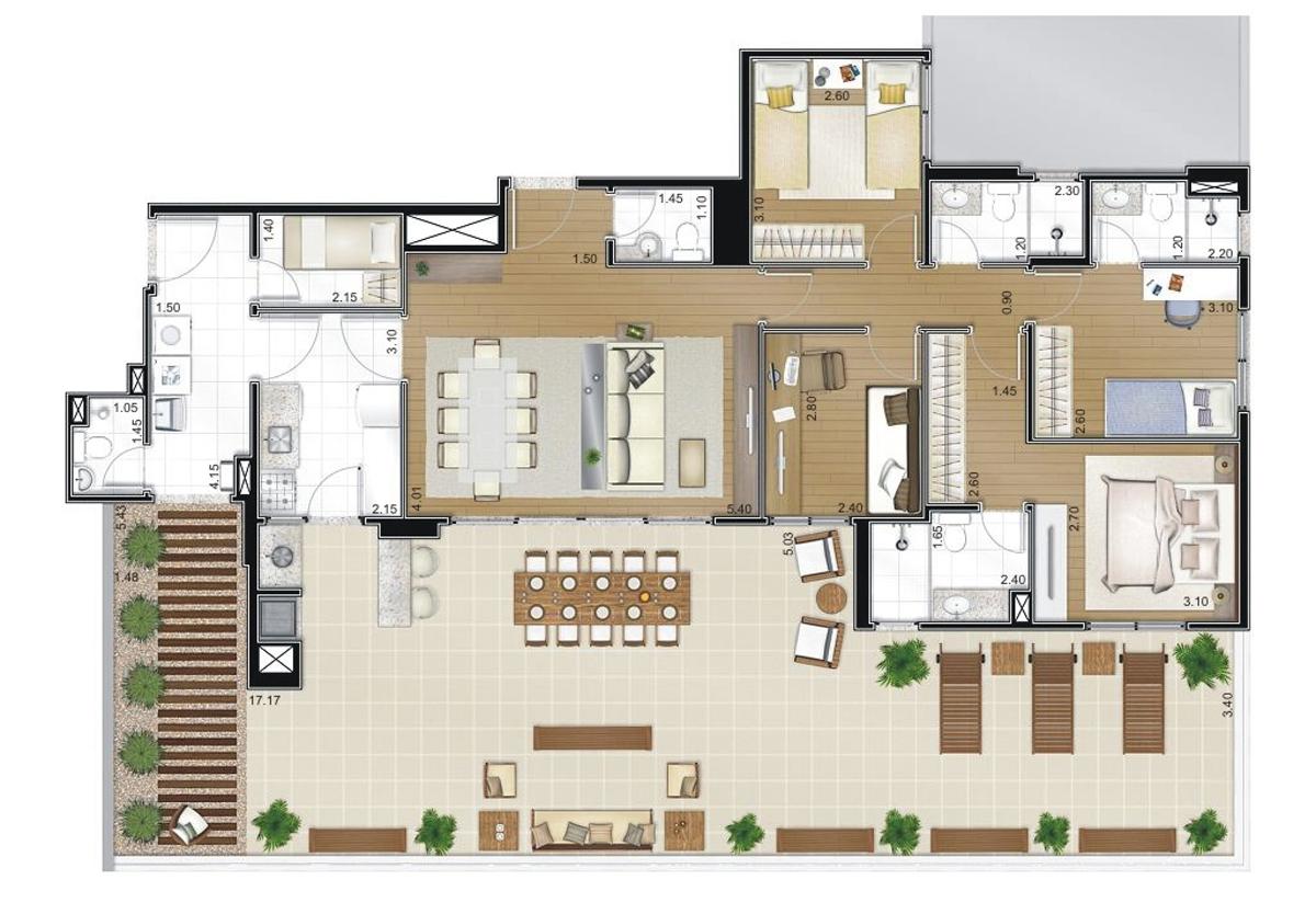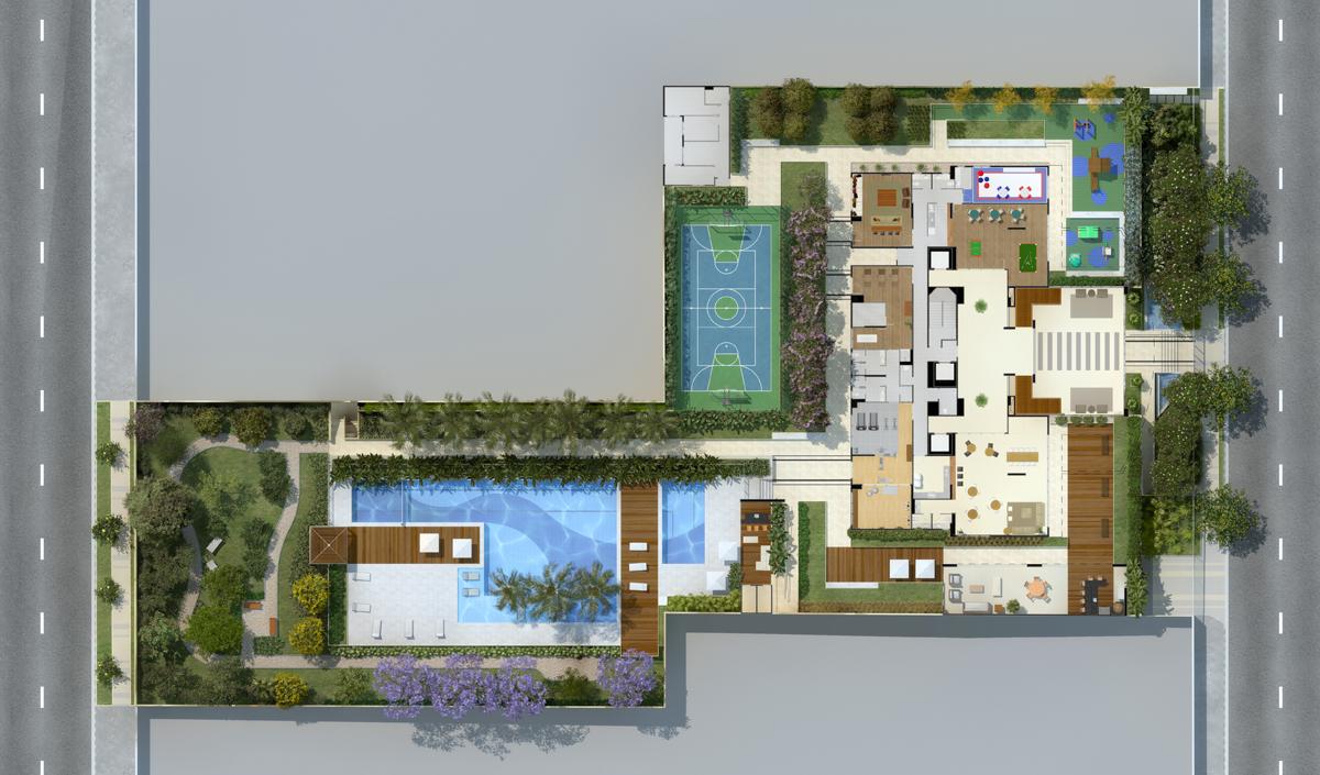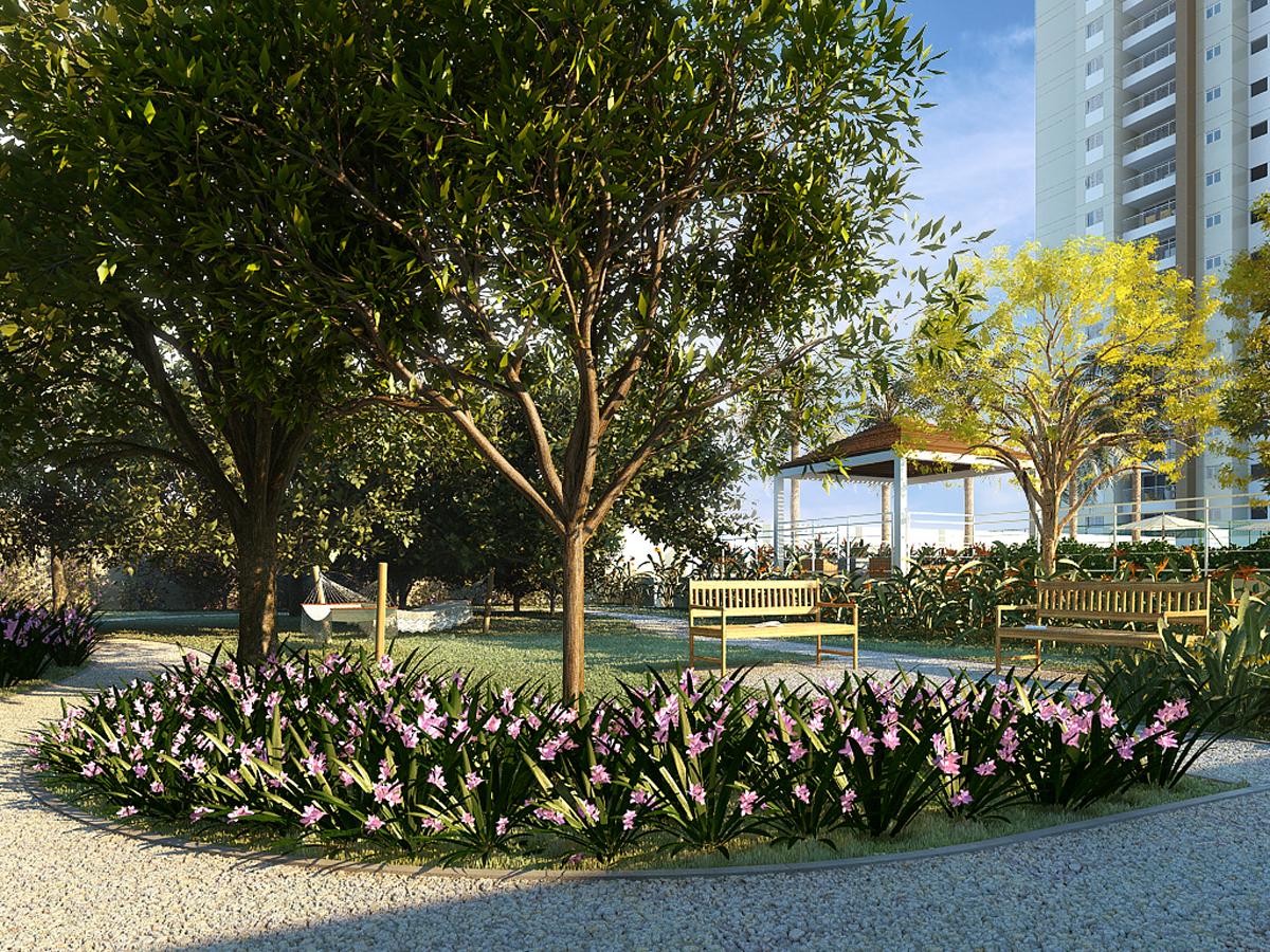 Lazer: Salão de festas, Salão de Jogos juvenil, Sala de ginástica, Fitness Center, Sauna com sala de descanso, Quadra poliesportiva, Playground, Piscina adulto com raia de 25 metros, piscina infantil, sala de massagem, pomar, redário, pista de caminhada
