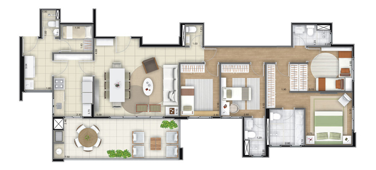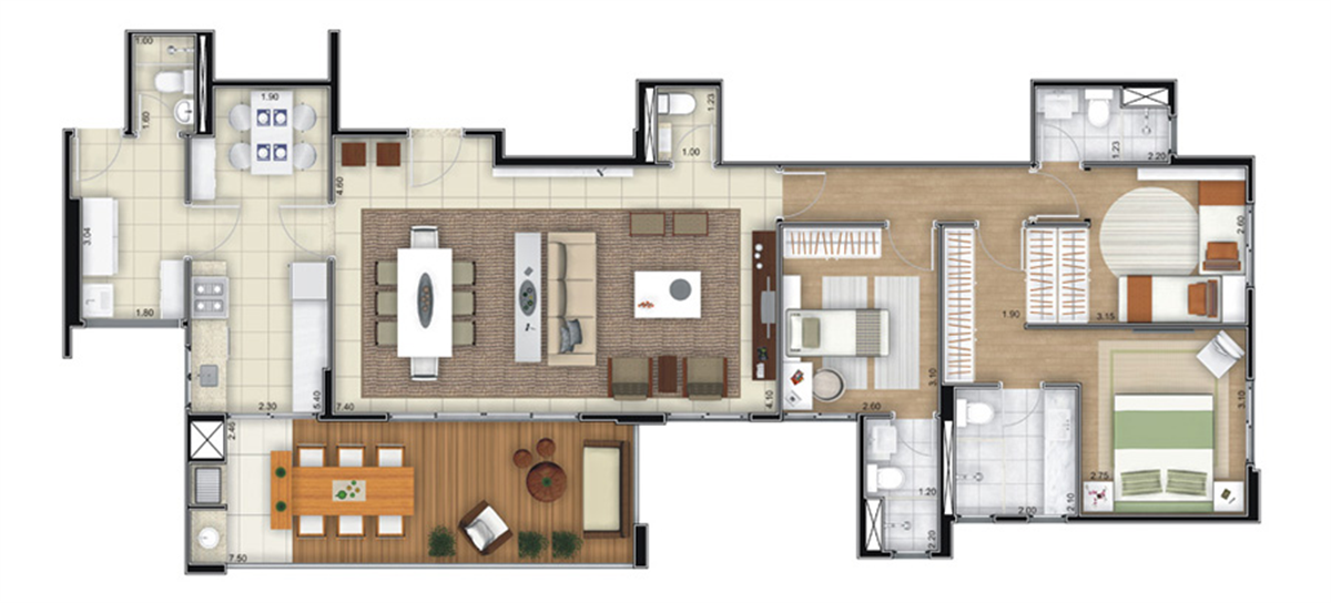 Apartamentos: 125 m² (4 Dorms. - 2 Suítes)