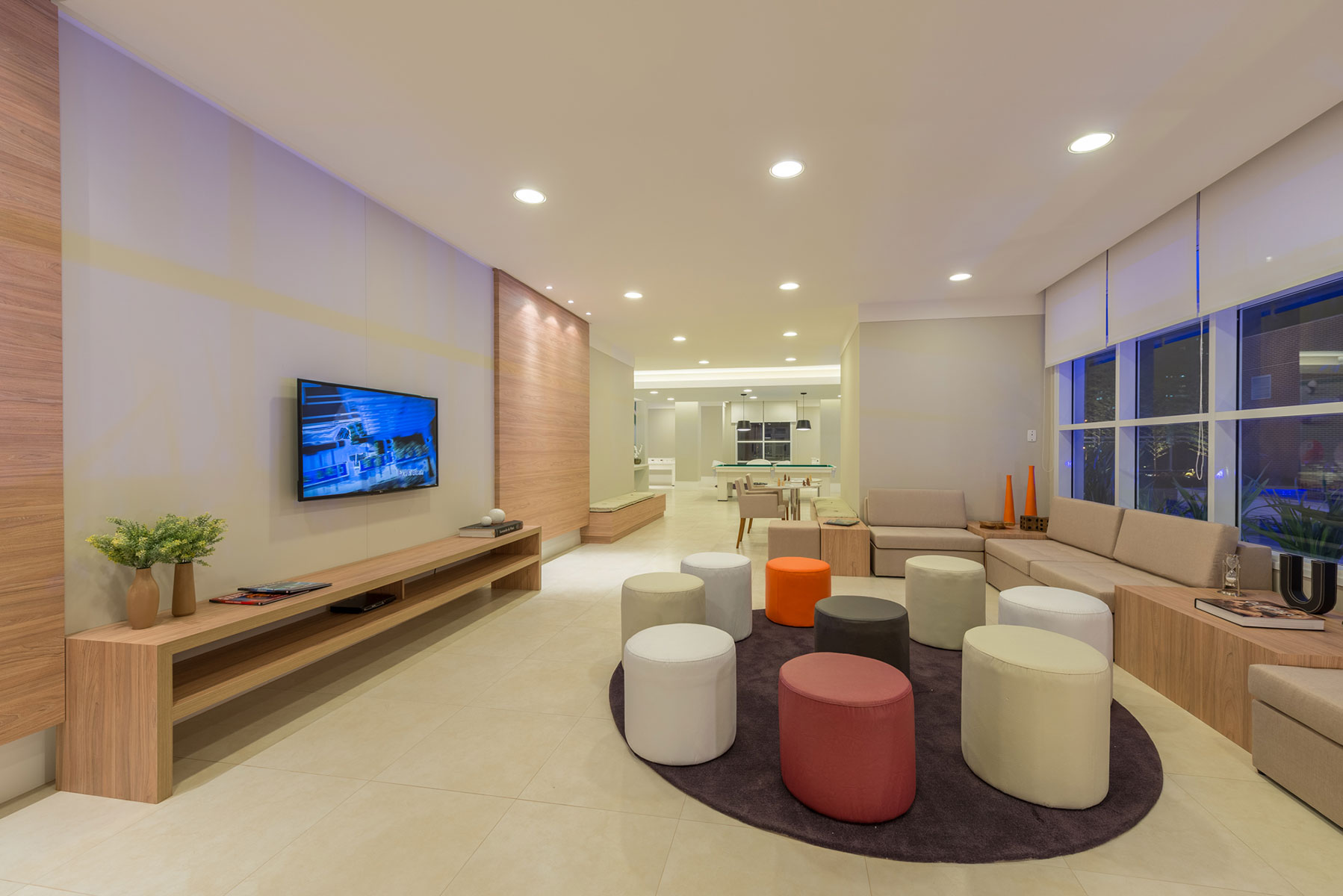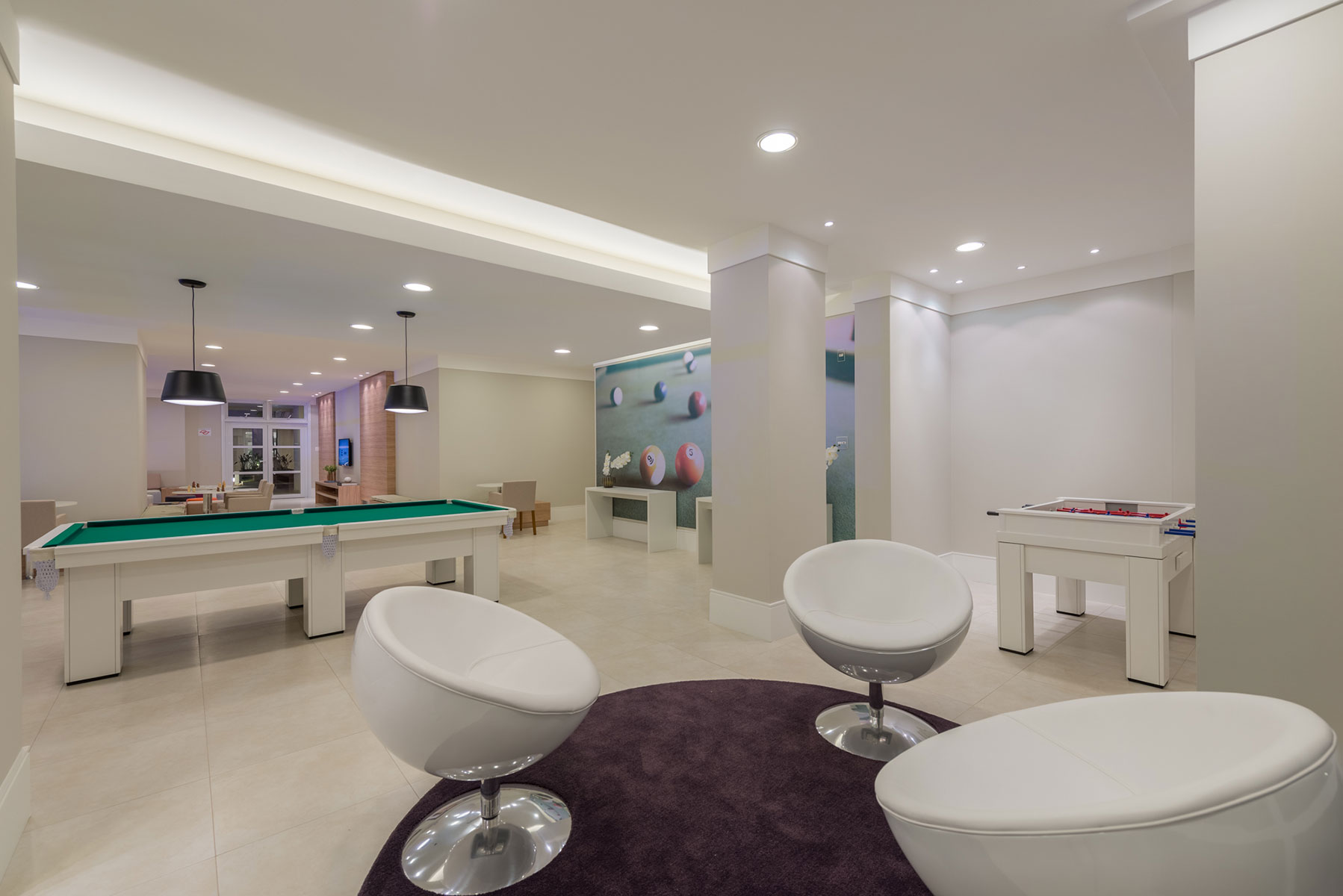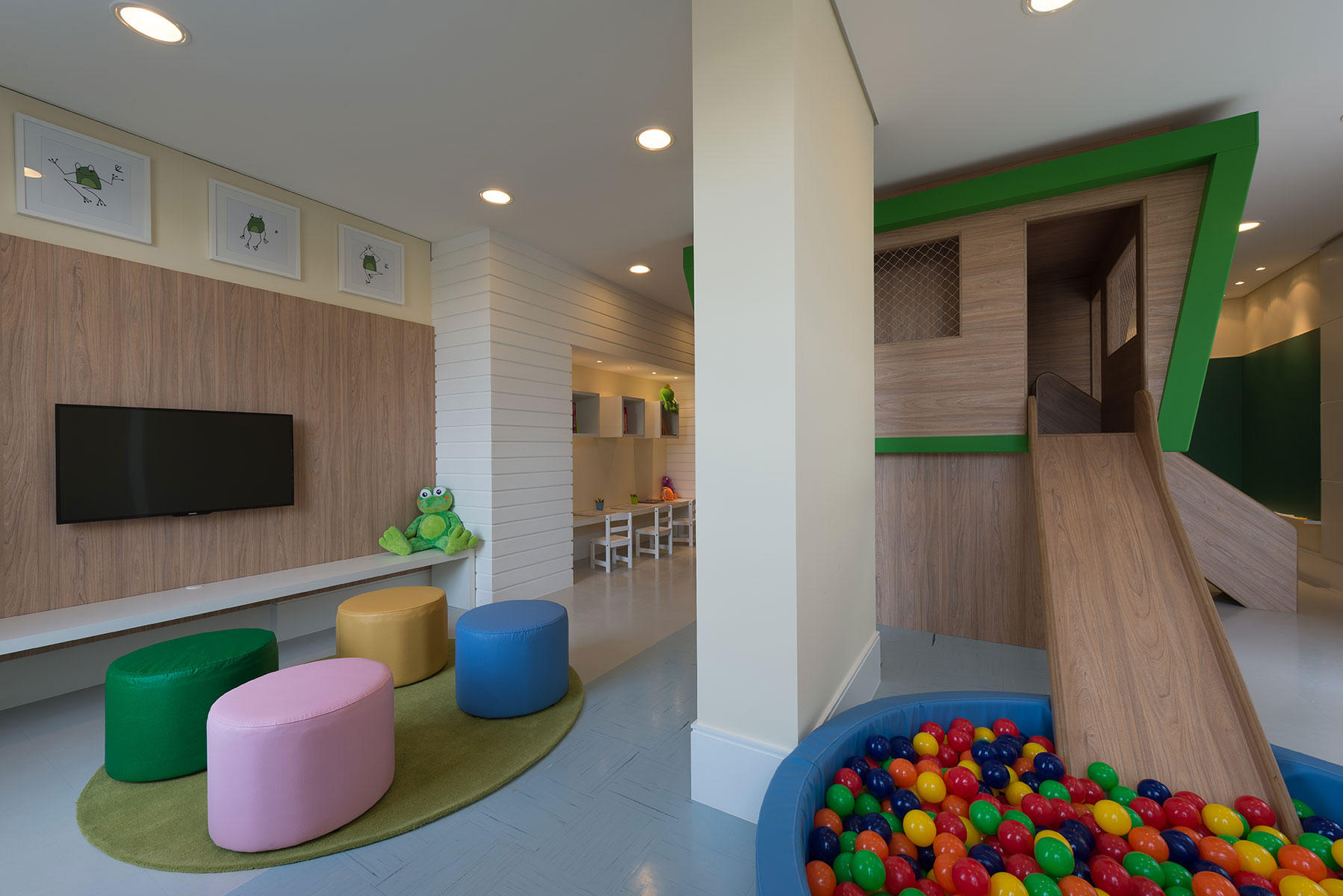 Lazer: Churrasqueira, Piscina Coberta, Piscina, Salão de festas adulto, Salão de festas infantil, Salão de festas Juvenil, Salão de jogos, Brinquedoteca, Fitness, Playground, Praça de luau, Quadra coberta, Sala de ginástica, Sala de Spinning