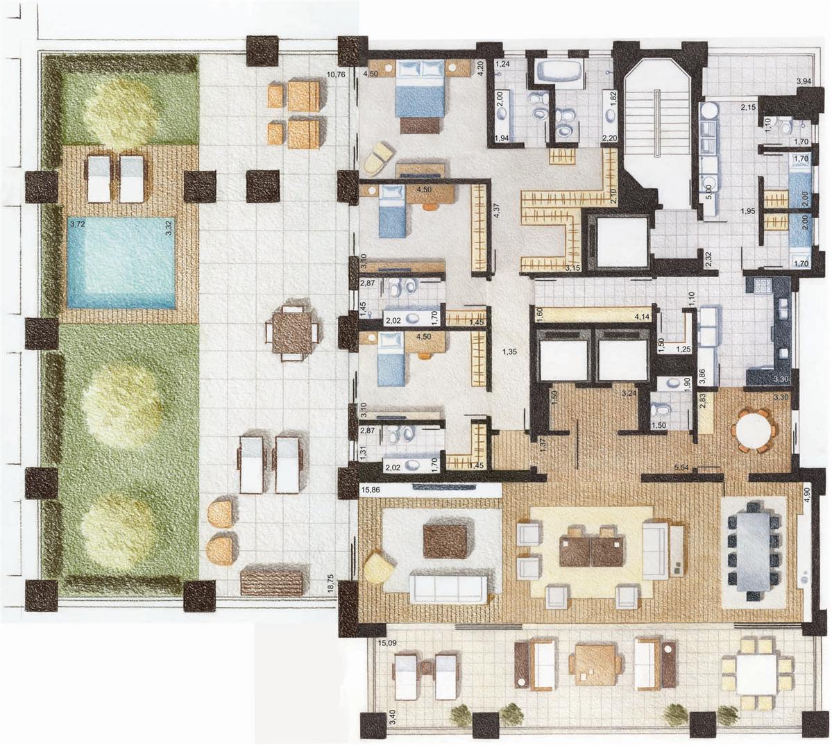 Lazer: Salão de festas, Spa, Sauna seca, Sala de massagem, Fitness, Piscina c/ raia de 20m