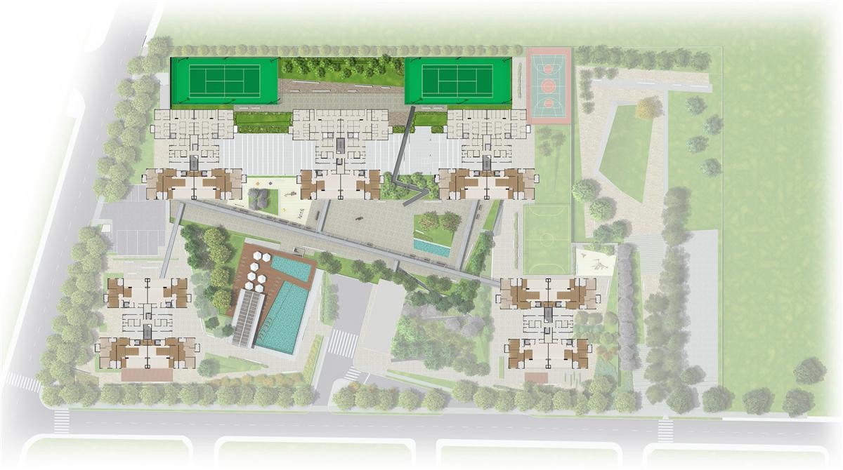 Lazer: Playground, Piscina adulto e infantil, Salão de jogos, Fitness, Sala de massagem, Sala de ginástica, Brinquedoteca, Salão de jogos, Quadra com grama artificial, Quadra poliesportiva, Quadra de tênis