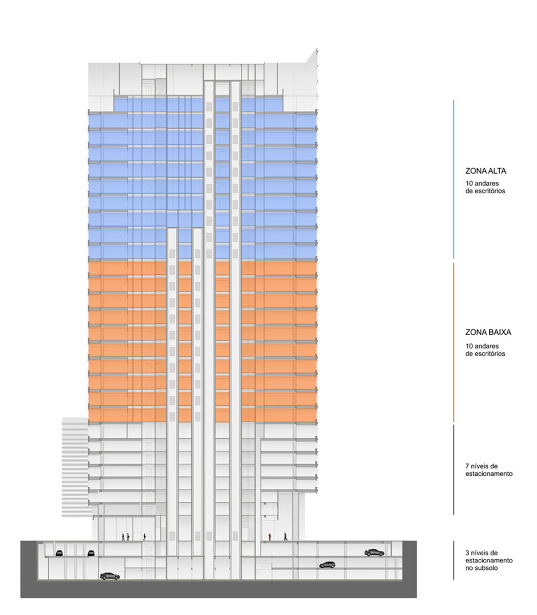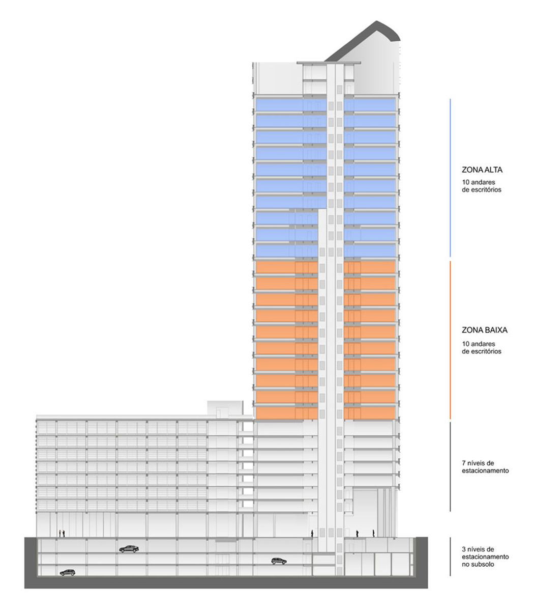 Nº de pavimentos: 20 pavimentos de escritórios | térreo | 7 sobresolos e 3 subsolos