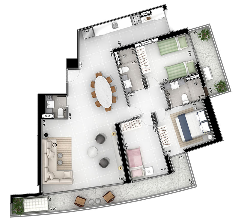 Apartamentos: 44 a 193 m² | 1, 2 e 3 Dorms.