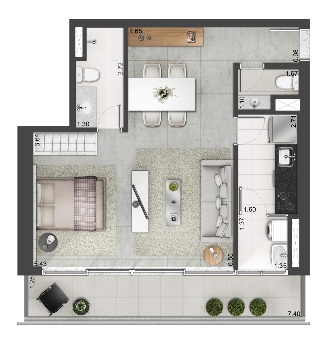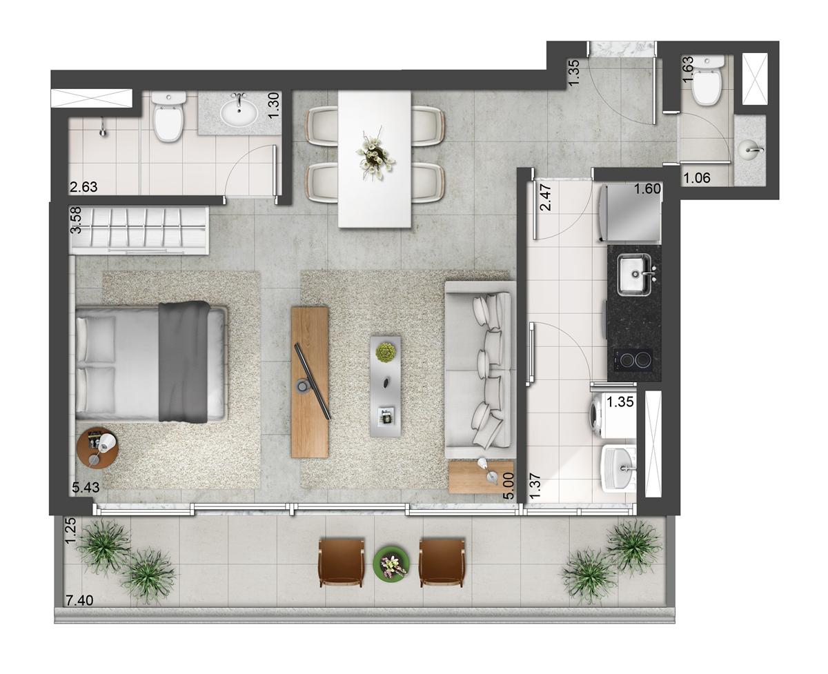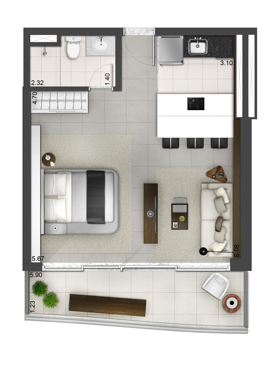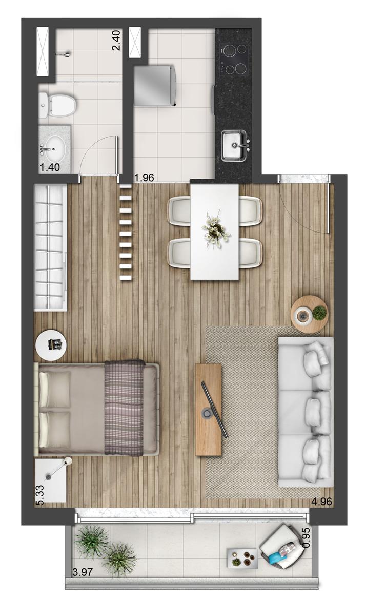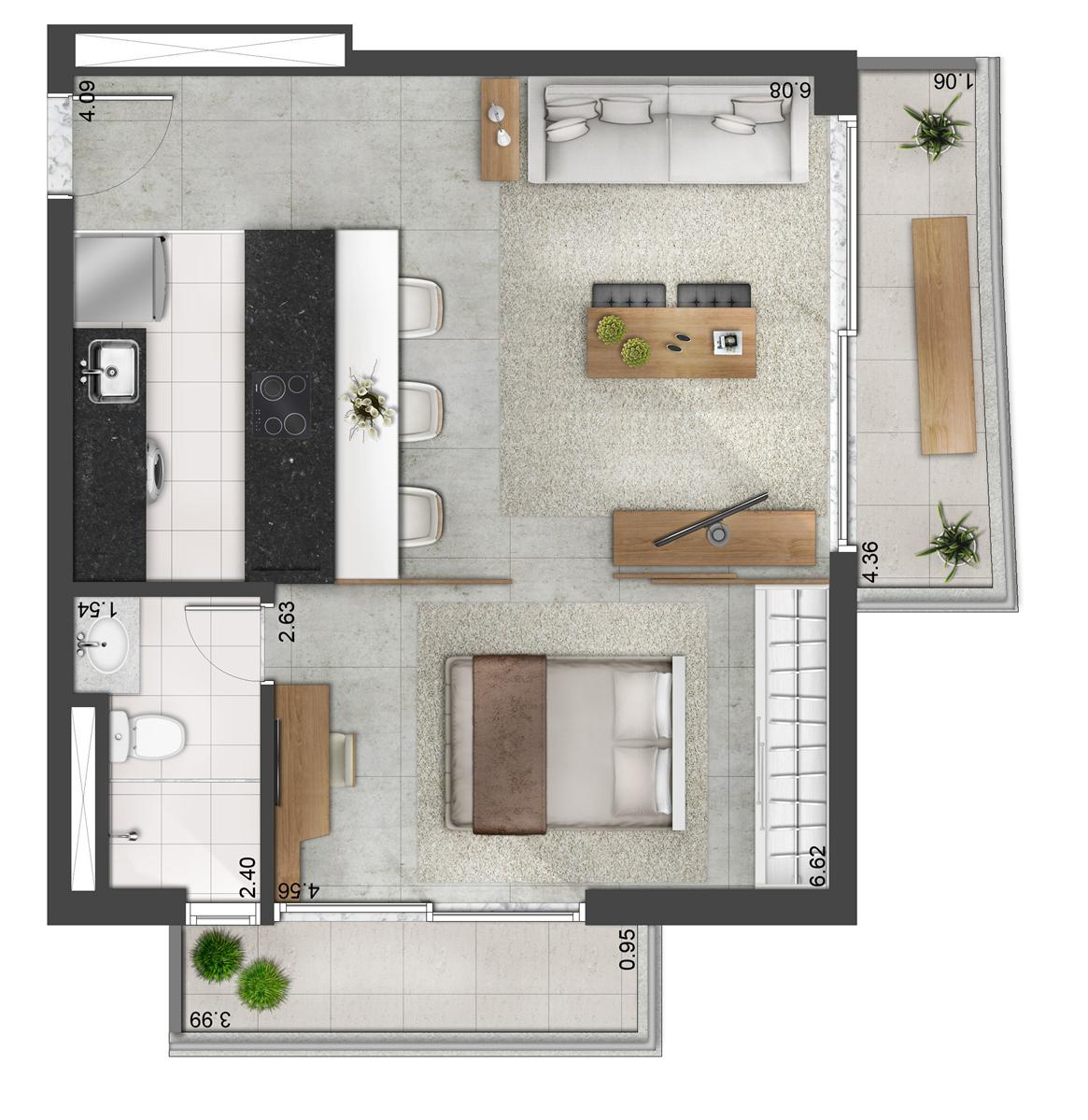 Tipologia: Apartamentos Studios de 44 a 60m² | 54 e 58m² (Opção de 1 suíte) Apartamentos de 67 e 72m² (2 dorms) Apartamentos Duplex de 87 a 134m² (2 dorms.) Salas Comerciais de 31 a 40m² | 47 a 53m² | 65 a 98m² Lajes Corporativas de 429 a 1.041m² (Meia laje)
