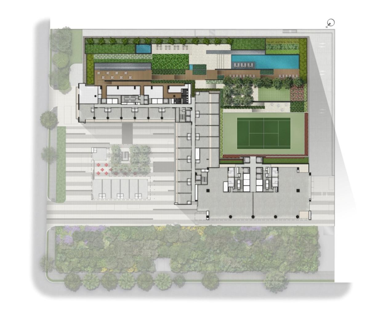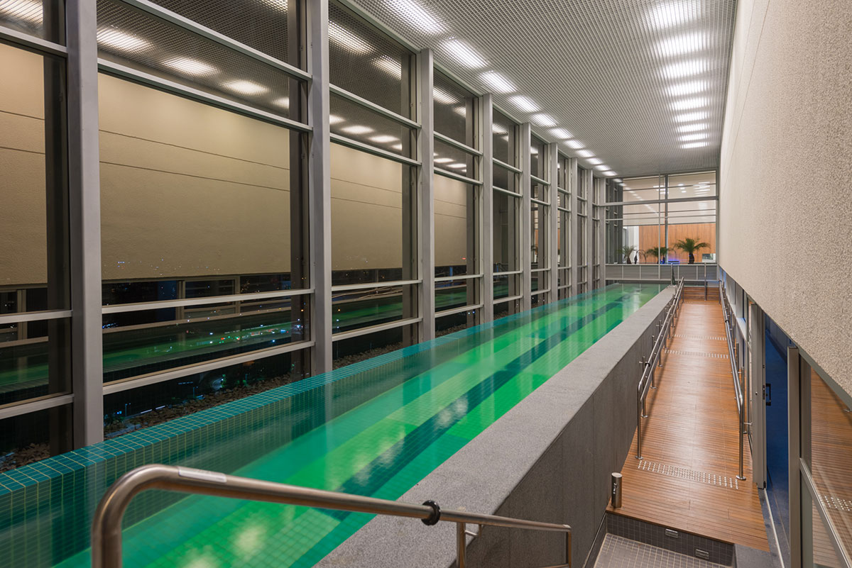 Lazer: Salas de massagem, Sala de ginástica, Saunas, Piscina adulto, Spa, Deck molhado, Deck descoberto, Playground, Quadra de tênis descoberta, Piscina coberta e climatizada c/ raia de 25 m, Churrasqueira de apoio para festas, Salão de festas
