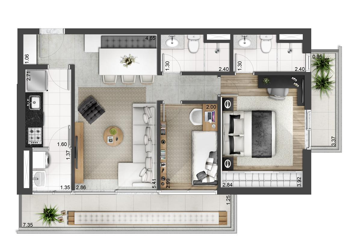 Conheça os apartamentos decorados em ambientes virtuais 360º selecionando uma das opções abaixo: