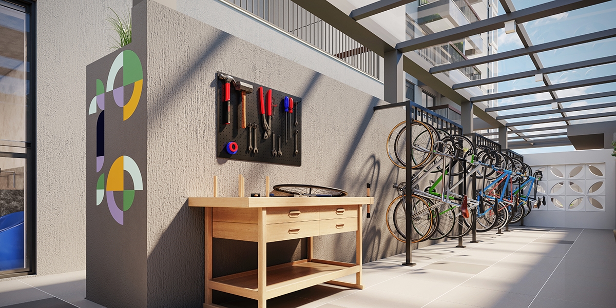- Bicicletário com mini oficina